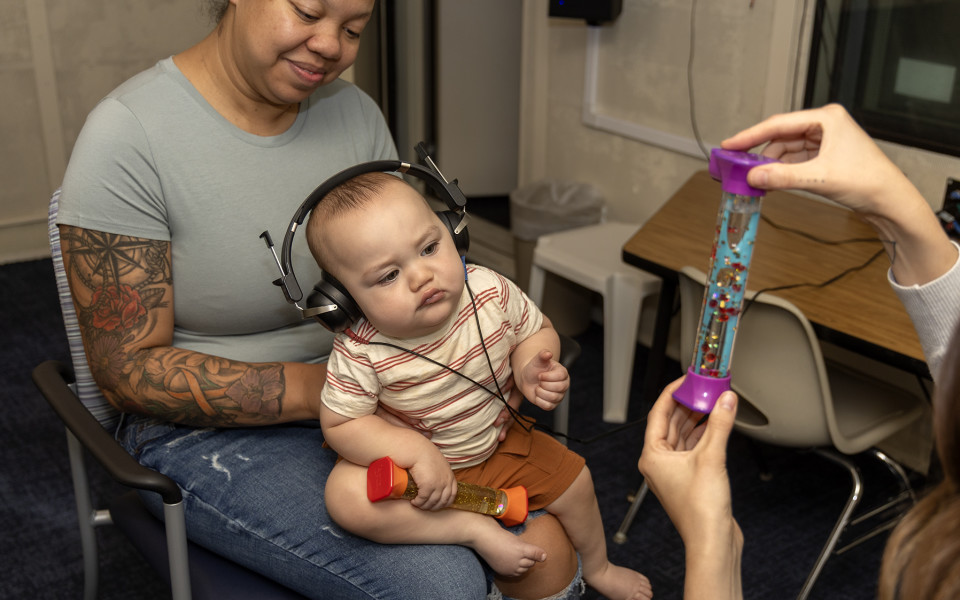 Most newborns accept wearing hearing aids. The challenge comes when they are old enough to reach up and take them off, beginning at about 4 months of age. It is natural to use this new skill of grabbing objects within their reach.