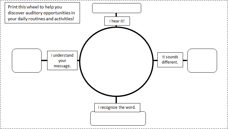 You can use the wheel below to help think about how you can target different levels of auditory development within routines at home.