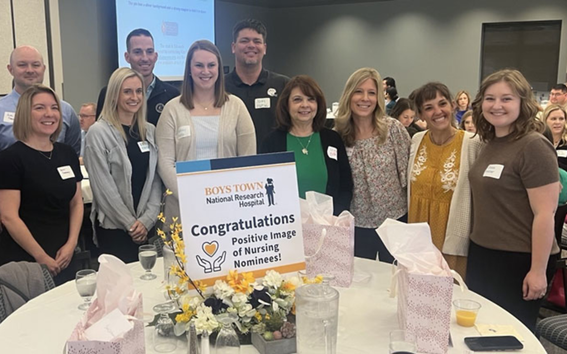 Ten nurses from Boys Town National Research Hospital were honored at the Positive Image of Nursing breakfast on Saturday, May 3 at the Scott Conference Center. This annual event, hosted by the Nebraska Nurses Association (NNA), recognizes nurses for their commitment and dedication to their profession. The nurses are nominated by their peers for their excellence in nursing.
