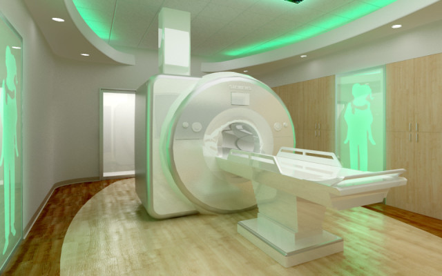 Our MRI patient caring suite is an oversized imaging room where patients can listen to music, watch videos and television and relax with calming imagery and sounds during an exam.